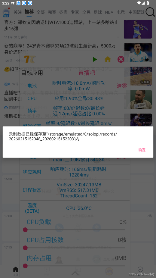 SoloPi能够记录待测应用的各项指标,支持实时观察模式与录制模式,如在悬浮窗中观察实时更新的数据,如对性能数据进行录制,在录制结束后查看图表