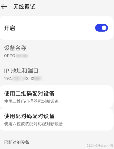 2:在设备上启用无线调试-使用配对码对设备(在开发者模式里),注意是用里面的那个id和端口,而且要高版本的安卓