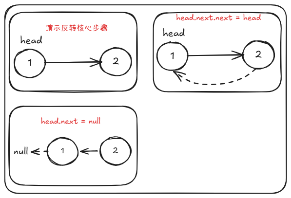 - 代码逻辑:head.next.next = head ⇒ 2.next = 1。