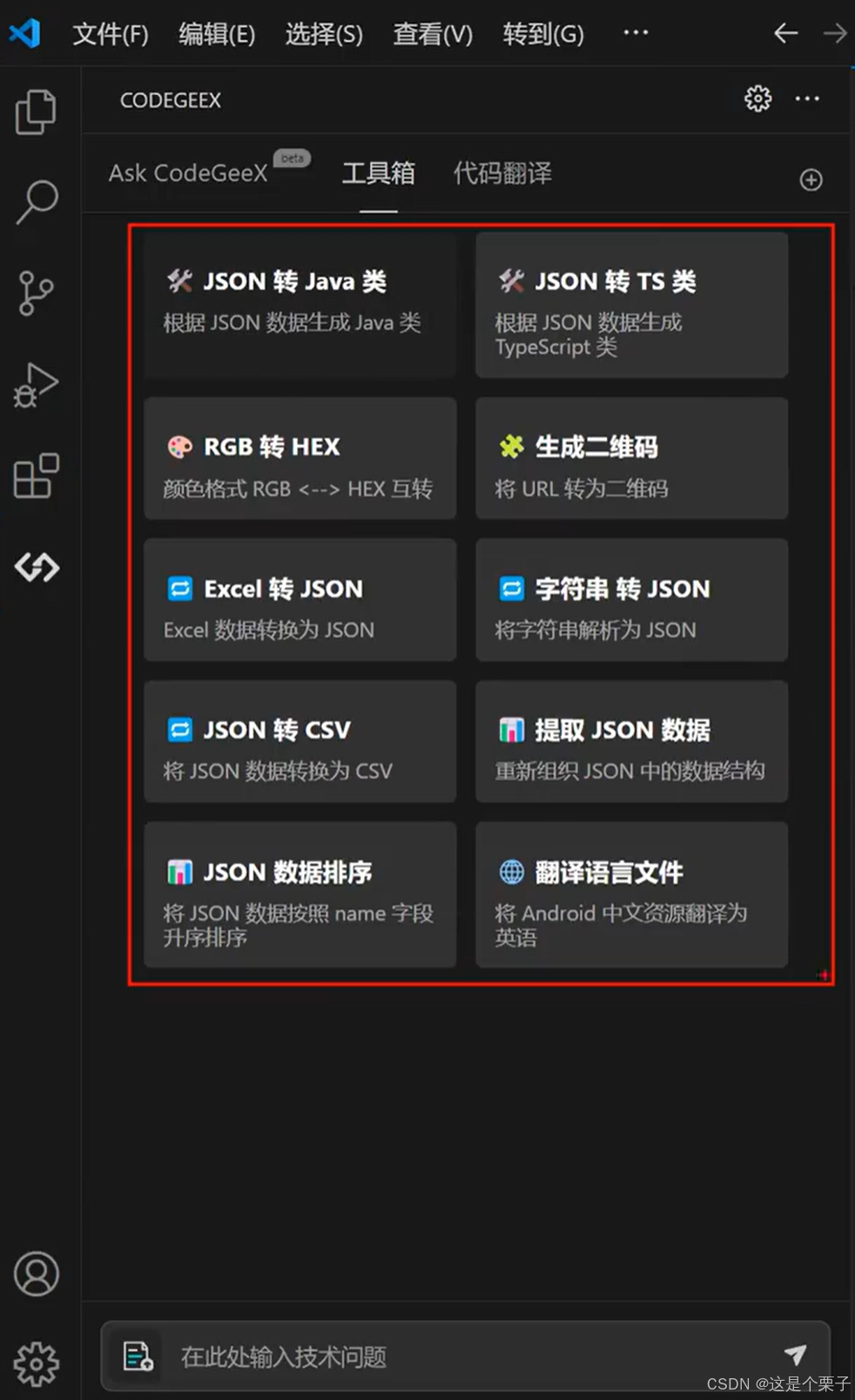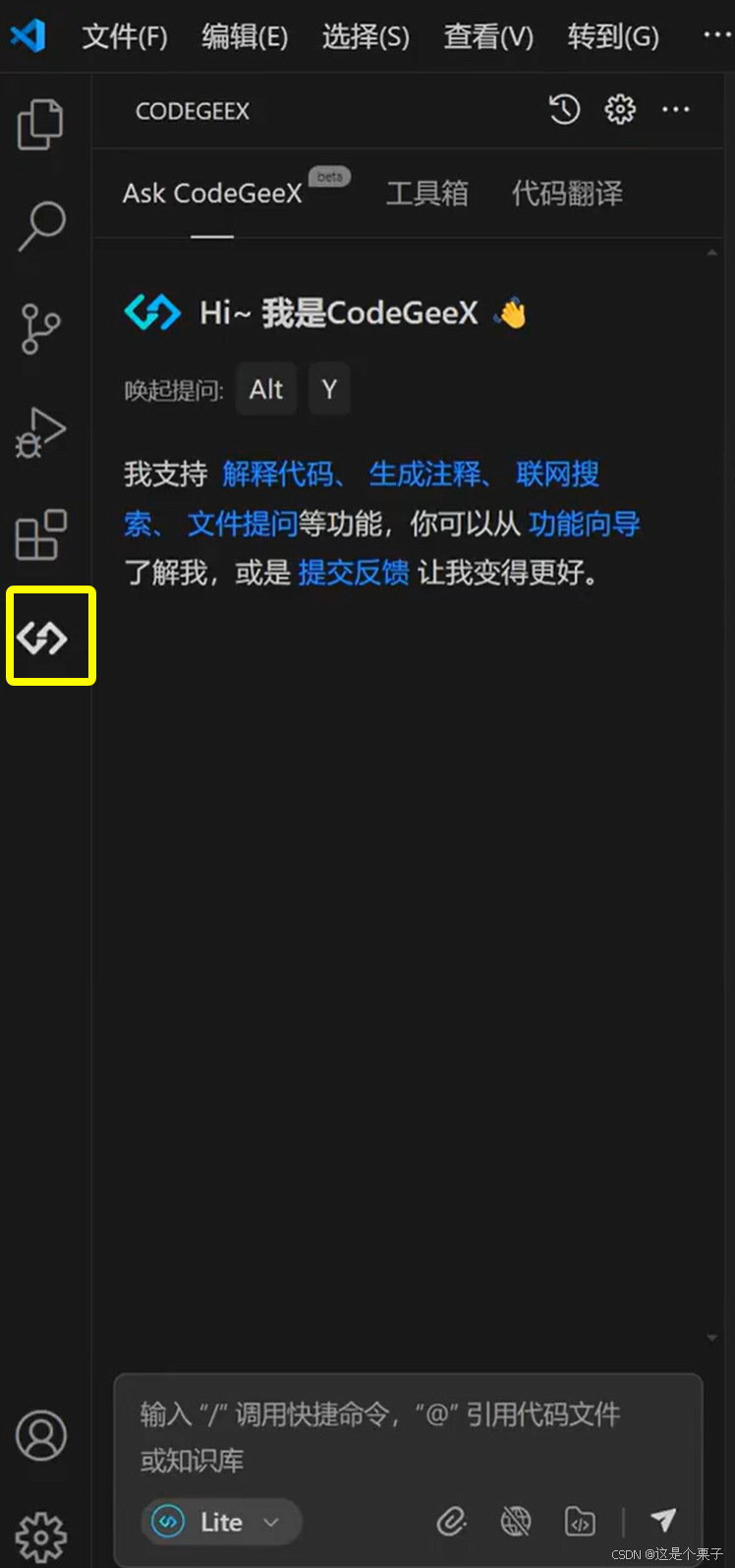 安装完成后,左侧会出现 CodeGeeX 的图标。