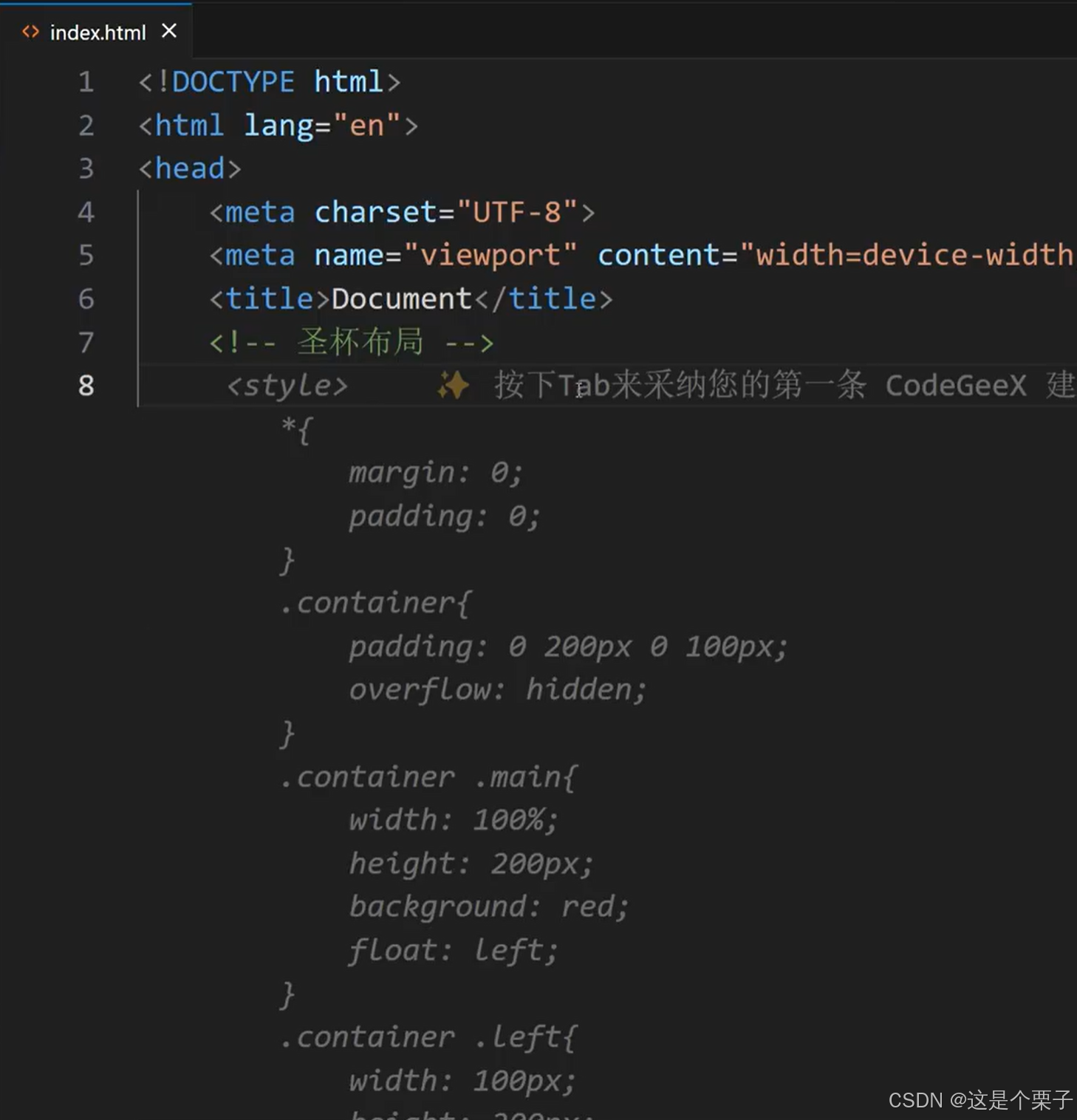 在前端开发的日常场景中,CodeGeeX 有几个非常"接地气"的功能点: