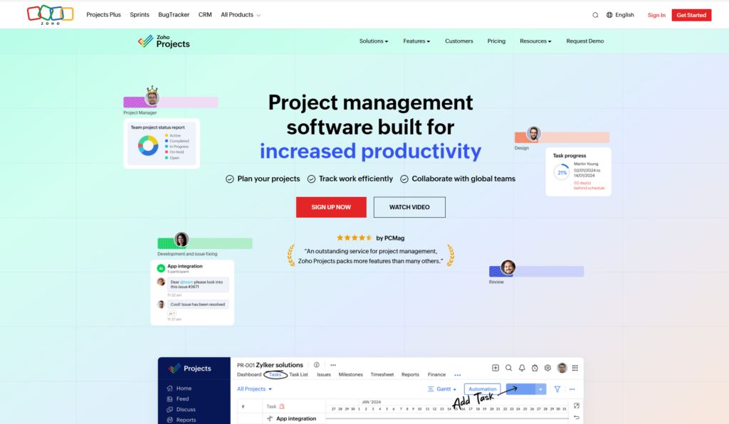 推荐理由: Zoho Projects 更偏"项目管理体系型",适合把计划、任务、工时、报表放在一个闭环里,覆盖面比较全面。
