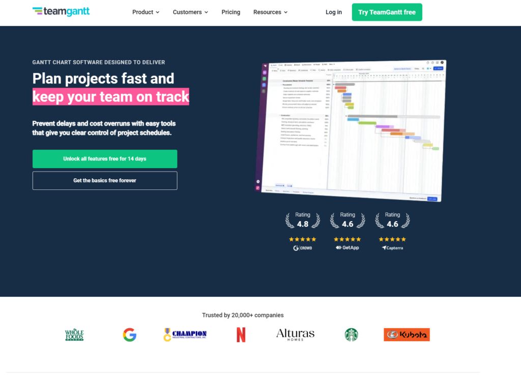 推荐理由: 如果你的核心诉求是排期与里程碑对齐,TeamGantt 会很直接。它的强项就是把计划做得清楚、看得明白。