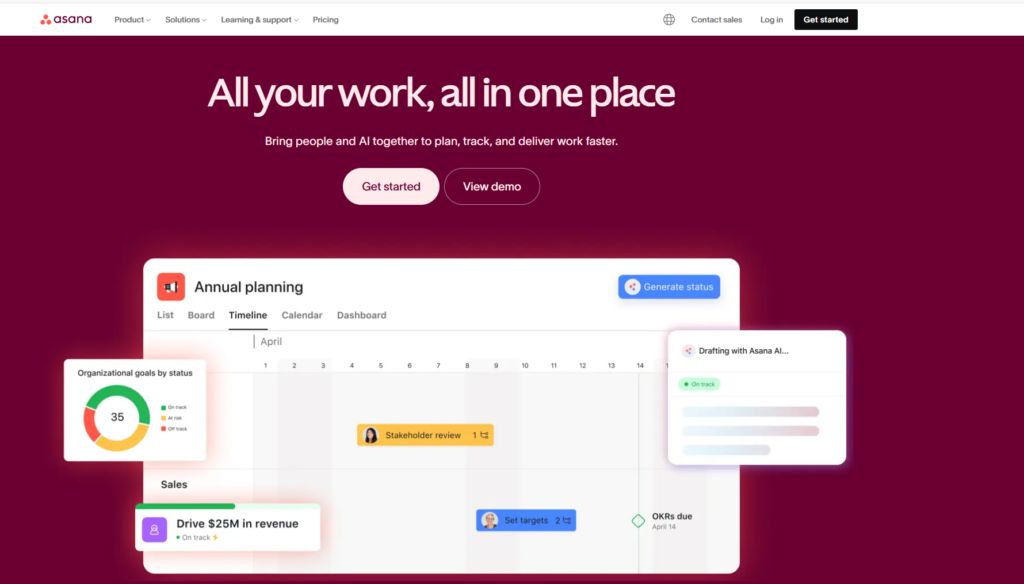 推荐理由: Asana 更适合业务项目与跨团队协作。它擅长把任务拆解、负责人、截止时间、依赖关系和目标对齐做得清楚。对市场、运营、产品、PMO 这类跨部门协作,Asana 的表达方式更直观。