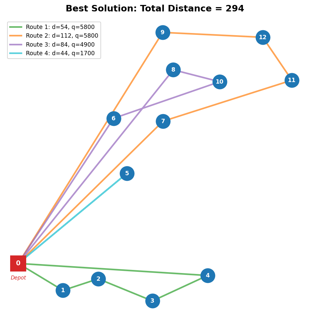 | A-n45-k7 | 44 | 7 | 100 | 1316 | 1146 | 14.8% | 0.6s |