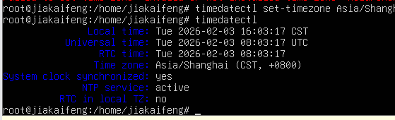 # 3. 再次查看时区,显示Asia/Shanghai即成功