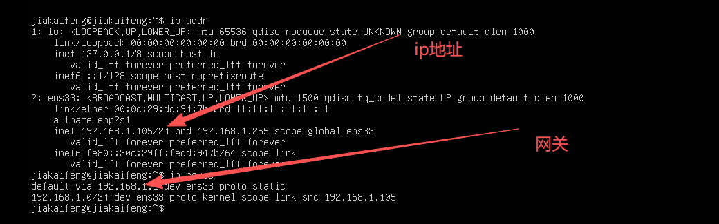 验证:ip addr查看ens33的 IP 是否变为192.168.1.105 //根据你自己的IP