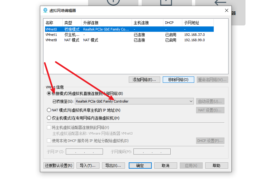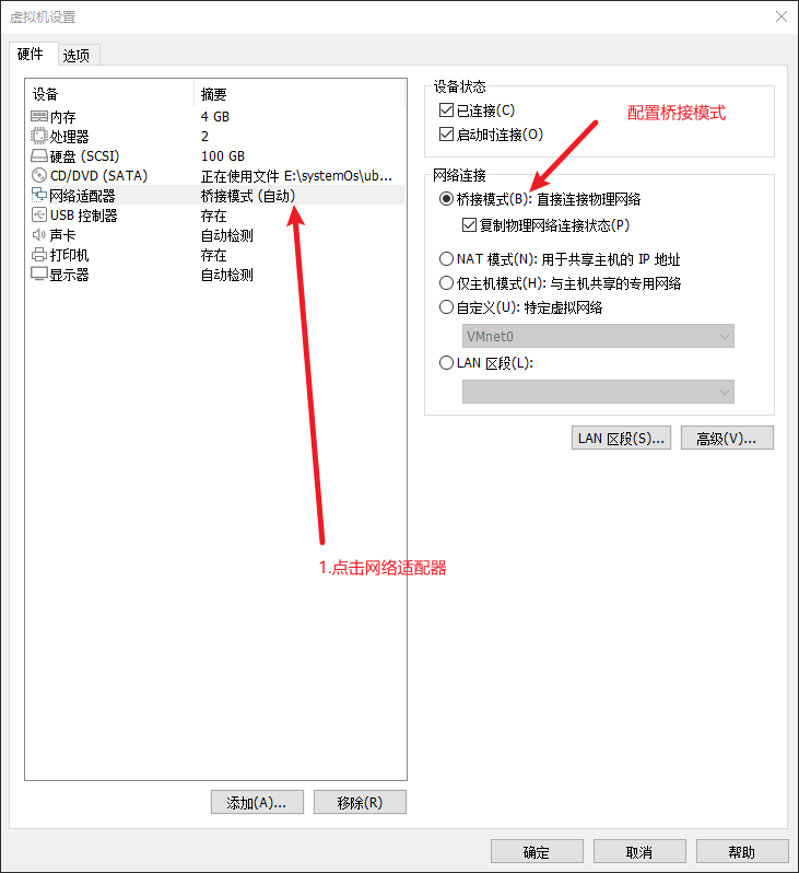 虚拟机网络连接采用的是桥接模式