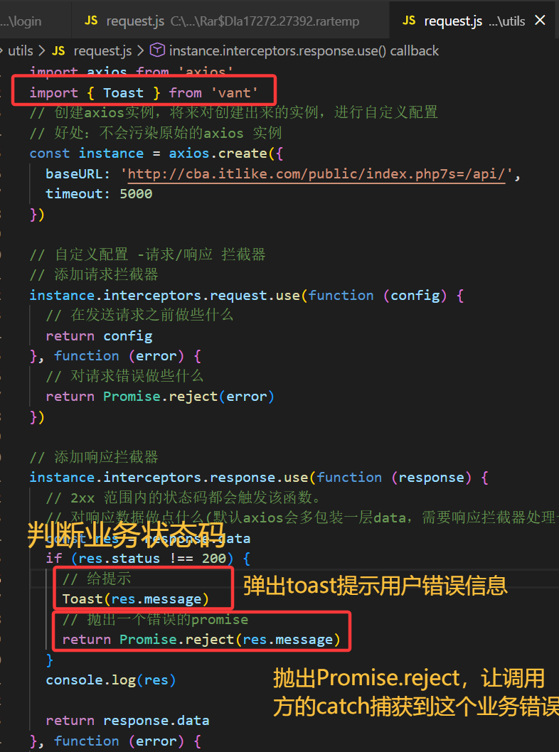 响应拦截器-统一处理错误