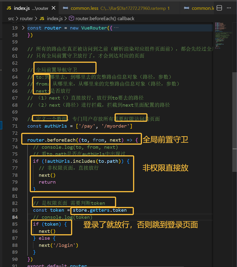 全局前置导航守卫