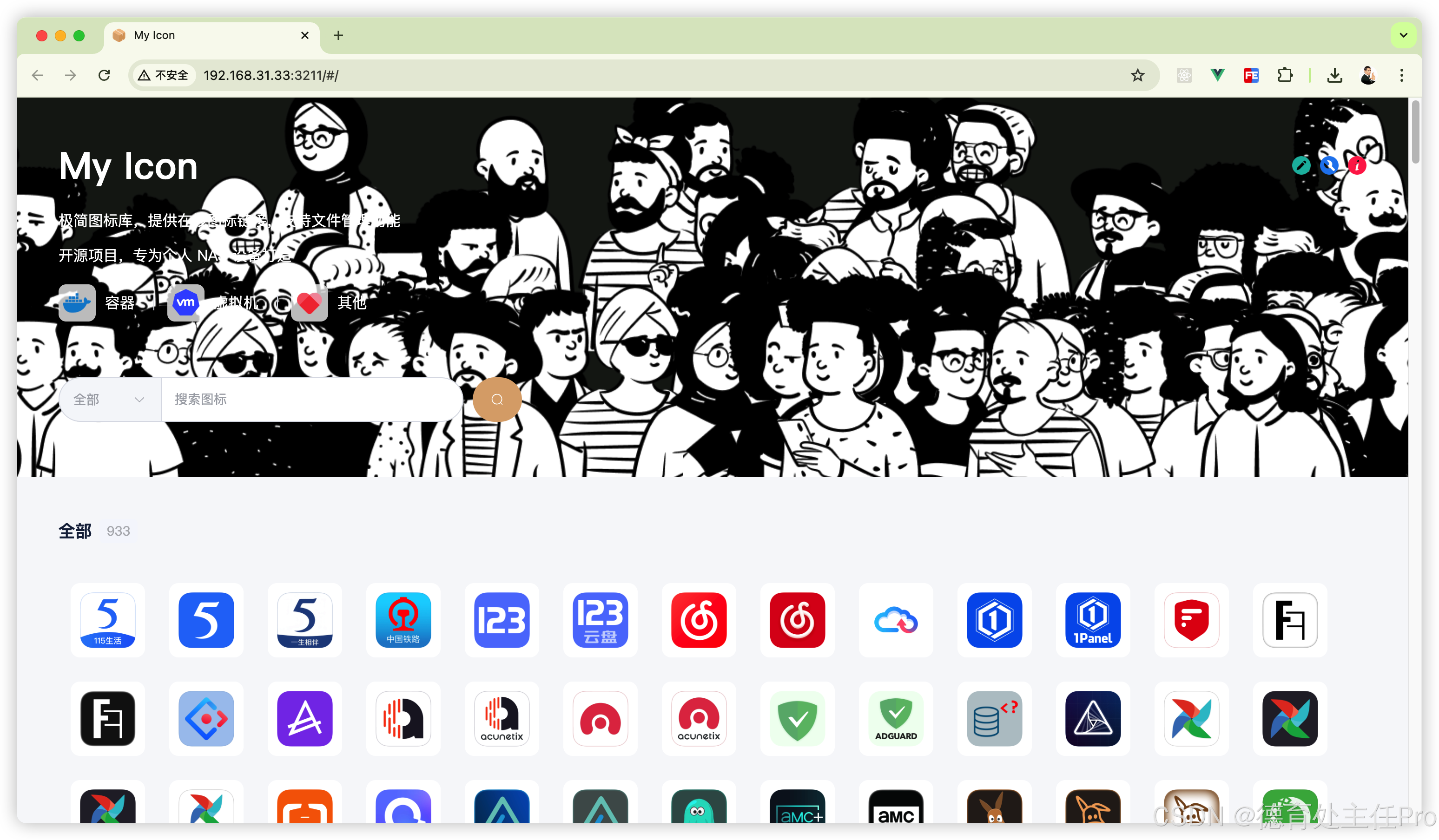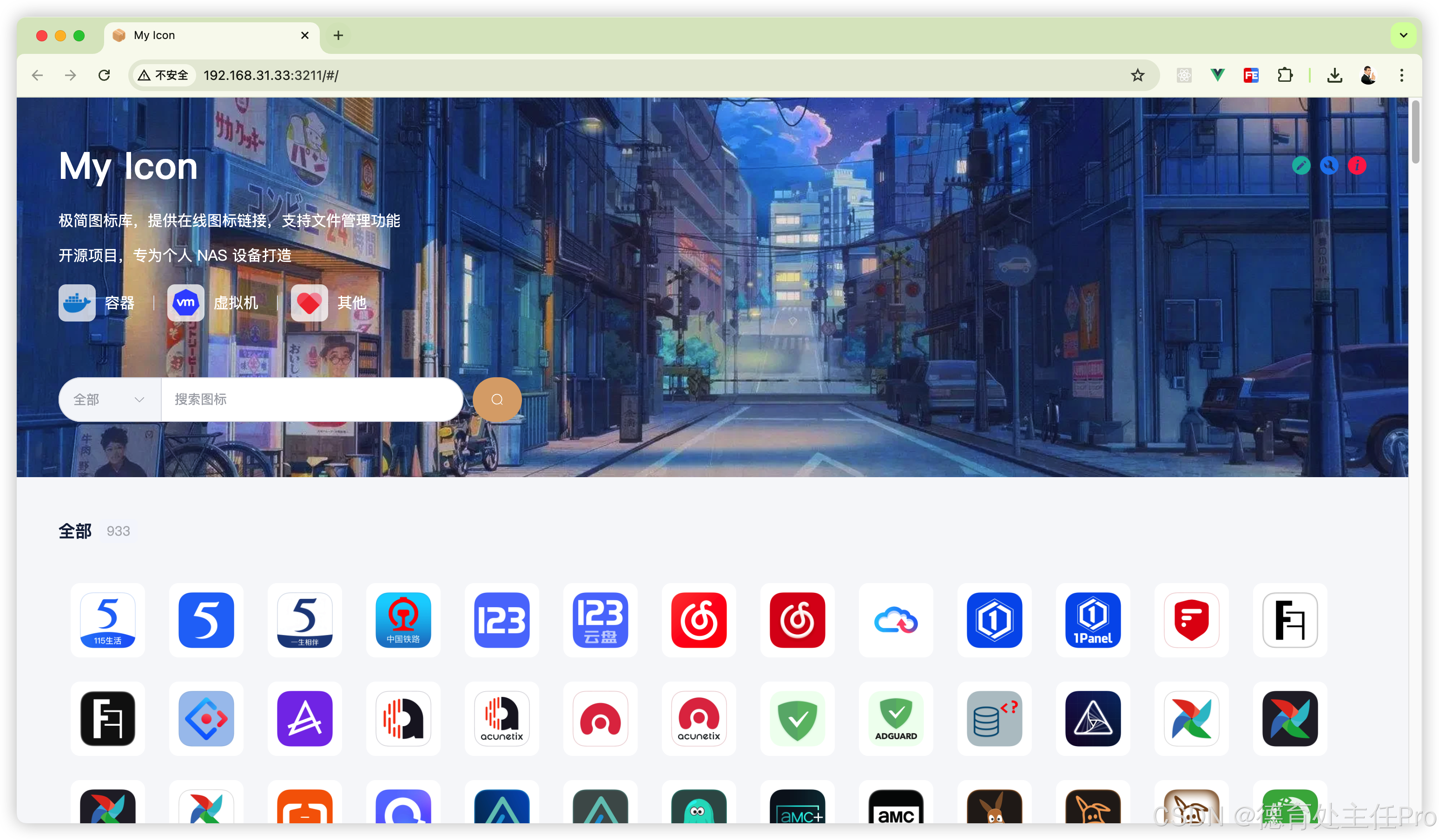 等项目构建完成,在浏览器输入 NAS的IP:3211 就可以访问 MyIcon了。