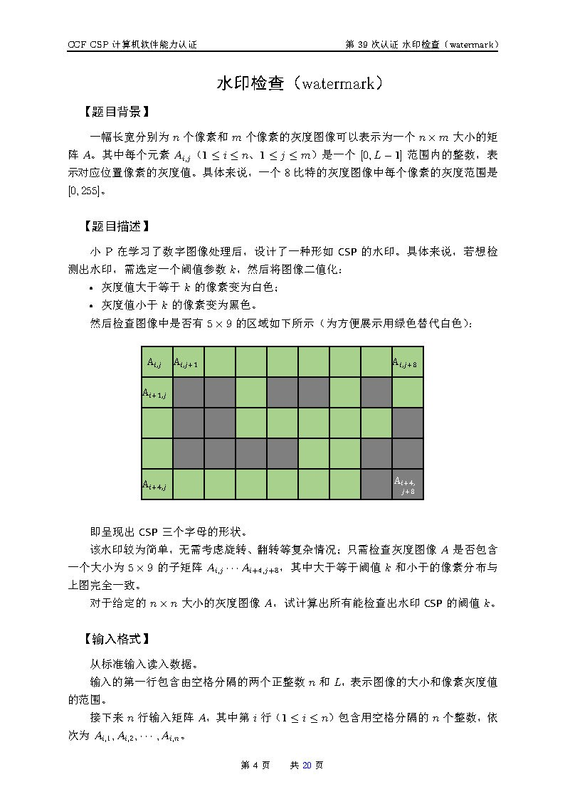 枚举左上角,每块5 x 9区域中,找对应"CSP"中白色像素位置的最小值mn作为可行解的上界,找对应"CSP"中黑色像素位置的最大值mx作为可行解的下界(取不到,因为k要大于mx),可行解为(mx,mn]