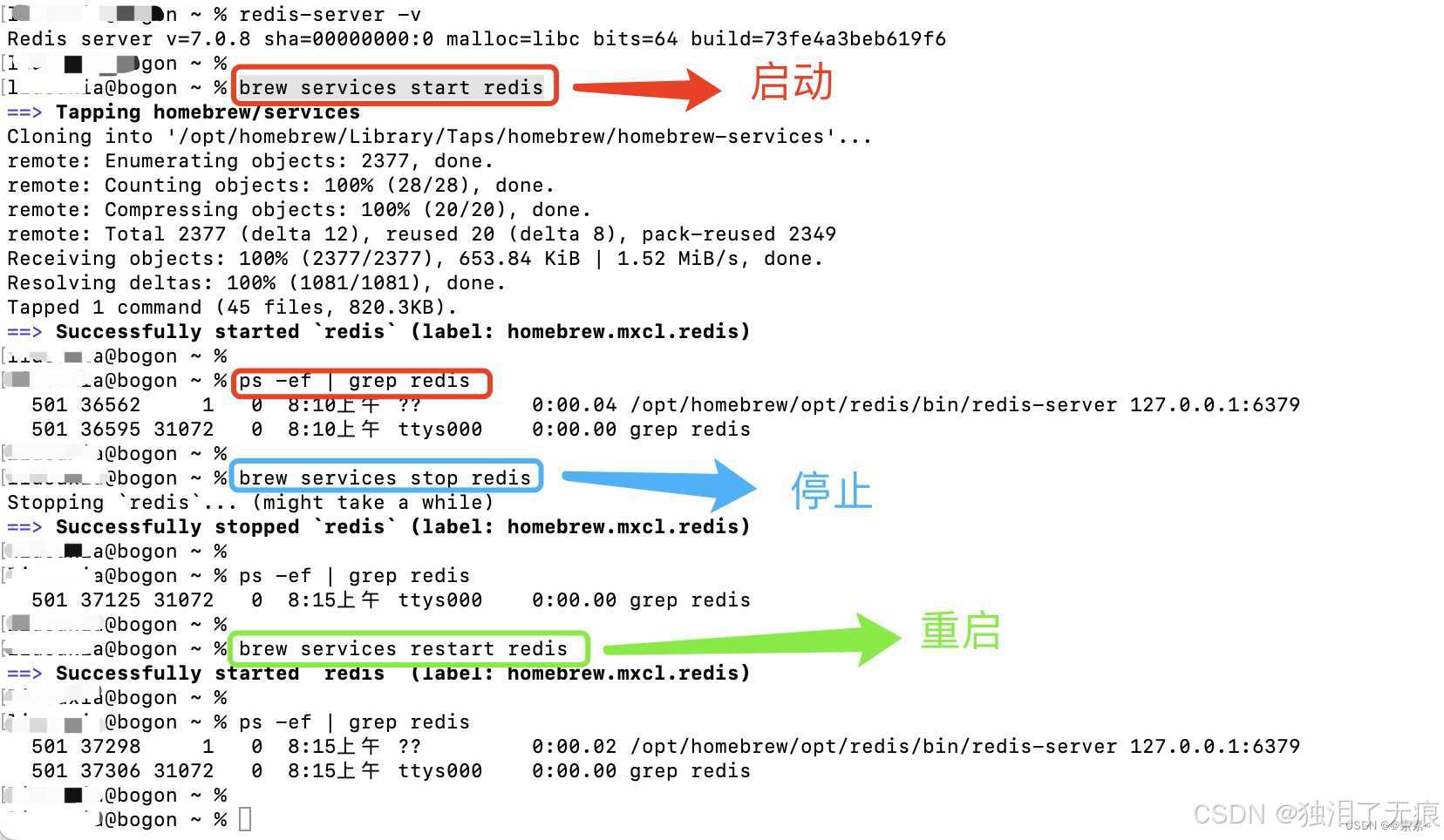 brew services stop redis是没有效果,需要手动停止 Redis 服务