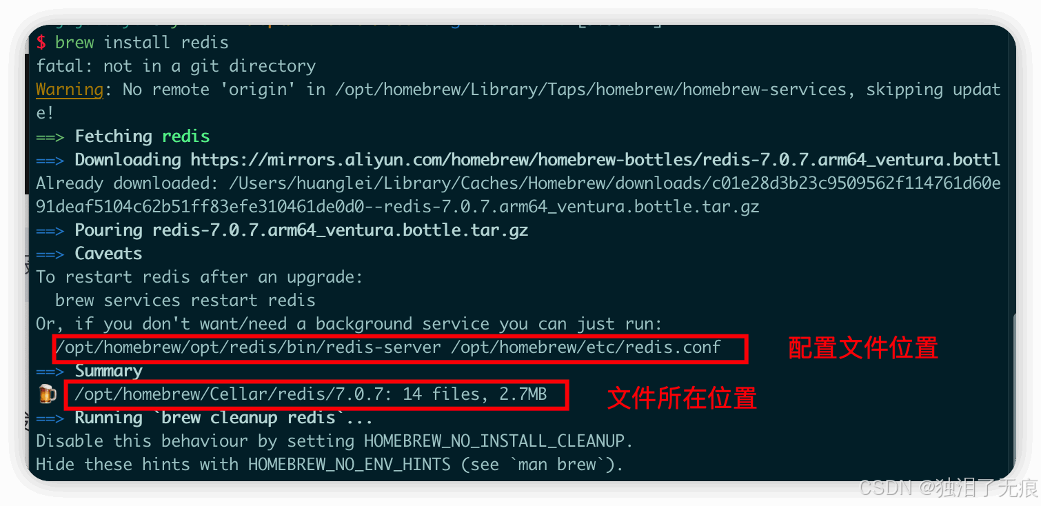 Homebrew 安装的软件会默认在 /usr/homebrew/Cellar/ 路径下,而 Redis 的配置文件 redis.conf 存放在 /usr/homebrew/etc 路径下。