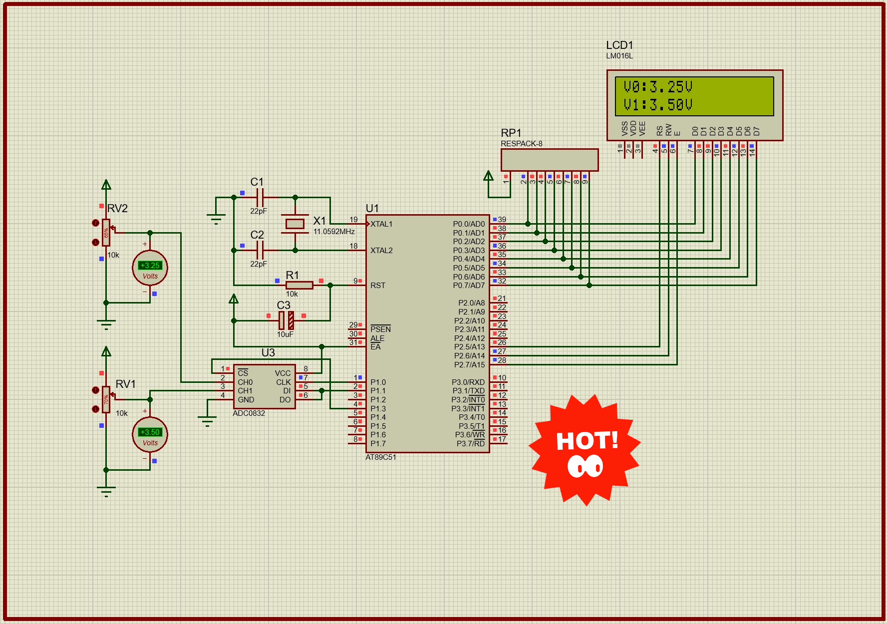 - 搭建电路:在Proteus中放置51单片机、LCD1602、ADC模块(例如ADC0832或者其他合适的)、电源、晶振、复位电路等。连接好各个模块的引脚,比如将LCD1602的数据引脚连接到51单片机的I/O口,控制引脚也连接好。ADC模块同样连接到对应的I/O口用于通信。