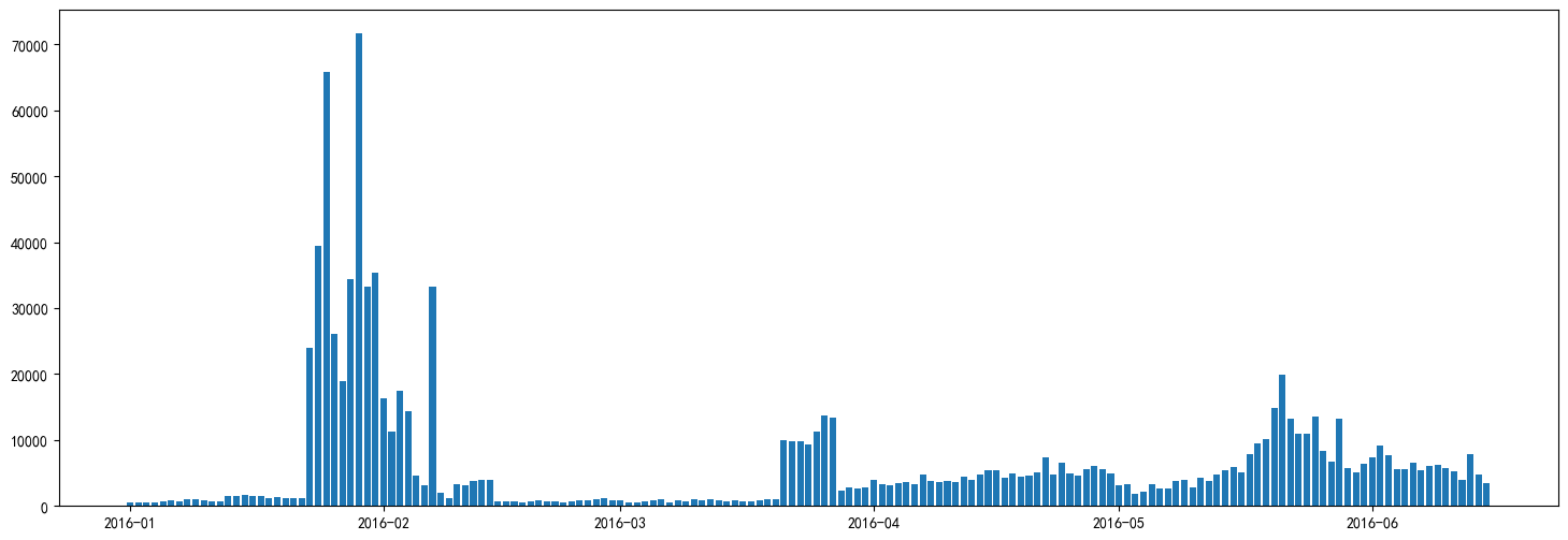 # plt.bar(x=date_receive_sort,height=coupon_sendout_everyday['count'],label='每天发券量')