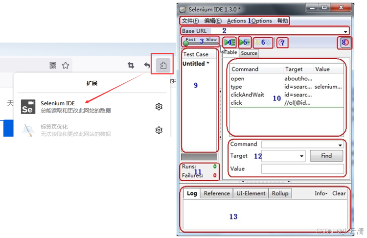 - [1.2 Selenium IDE 运行](#1.2 Selenium IDE 运行)