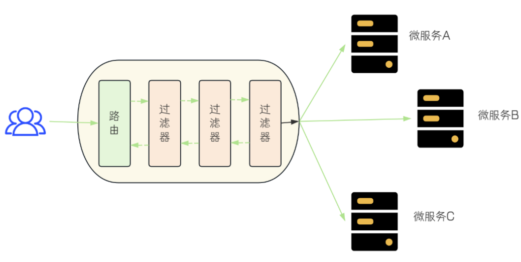 动态路由: ⼀切请求先经过网关, 但网关不处理业务,而是根据某种规则, 把请求转发到某个微服务