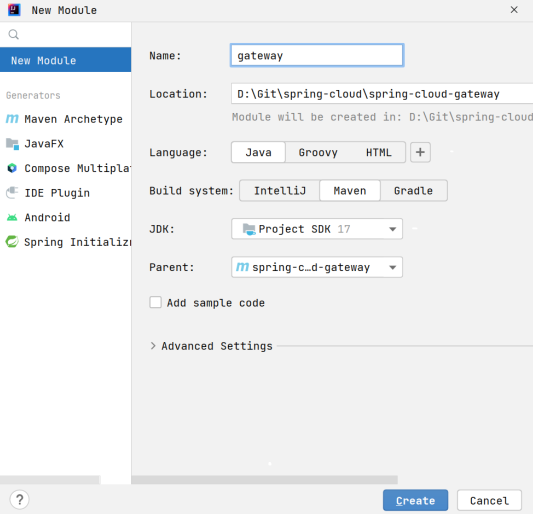 2.1.1 创建网关项目