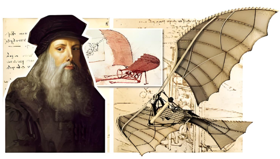 意大利学者达芬奇于十五世纪的七十年代(1470x)绘制出了想象中的飞行器草图。