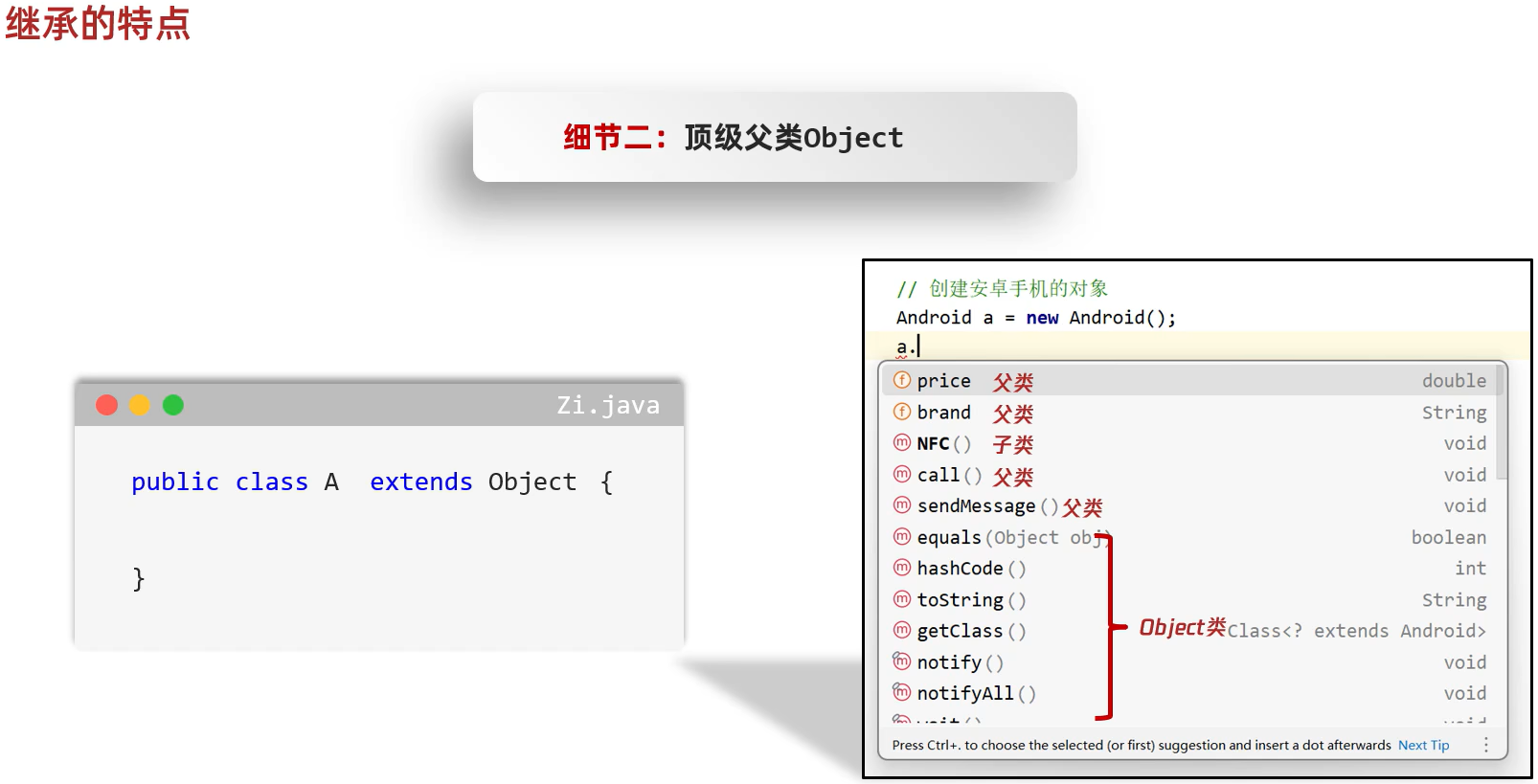 第二个特点是,假如一个class没有设置父类,那么默认继承Object类