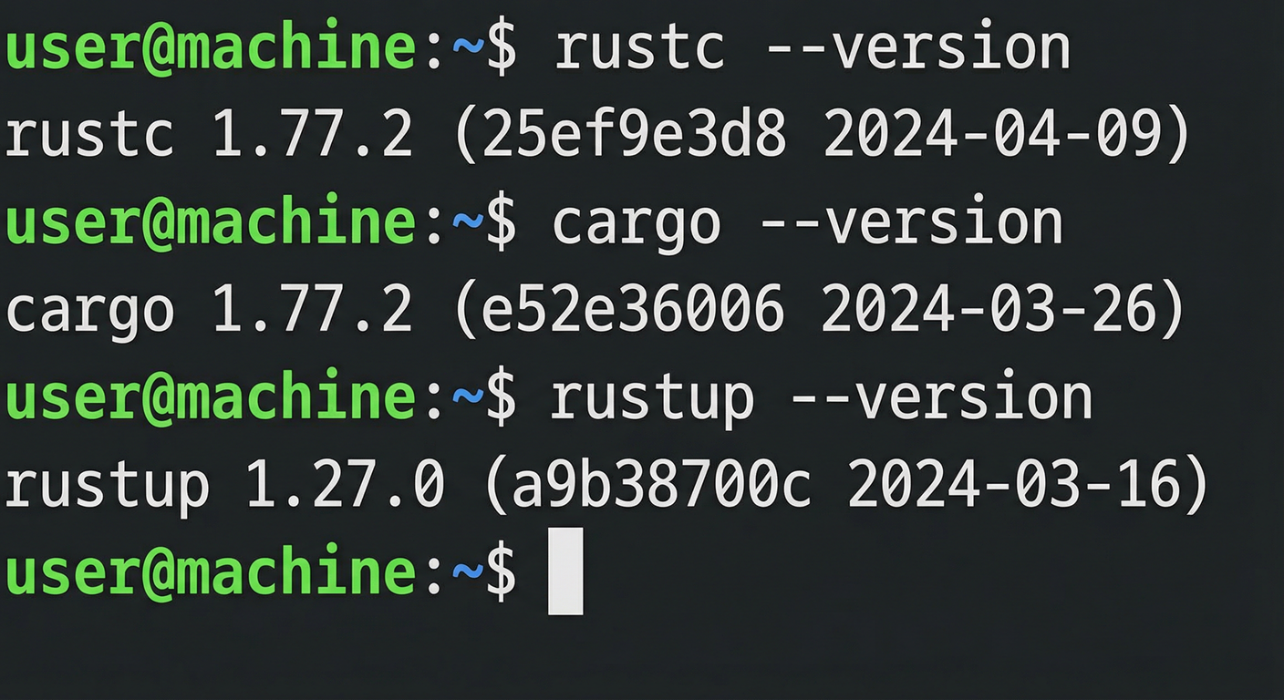 图 3:在终端中验证 rustc、cargo、rustup 版本