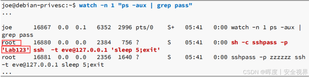 作为权限提升枚举的一部分,检查运行进程 可能发现管理员留下的异常行为,尤其是以 root 权限运行的进程中暴露的敏感数据(如明文密码)。