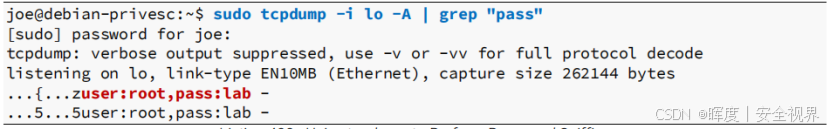 然而,IT 管理员有时会被授予 sudo 权限 来运行 tcpdump,以便快速排查网络问题。这意味着某些非 root 用户也可能具备抓包能力,这正是攻击者可以利用的入口。