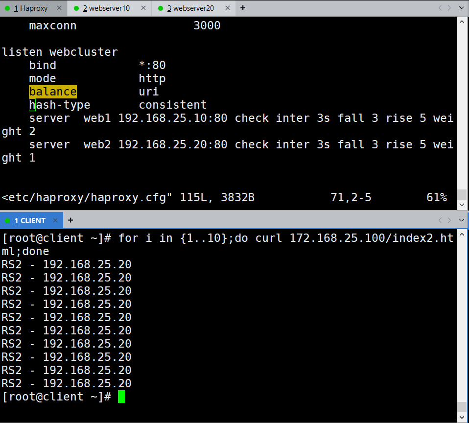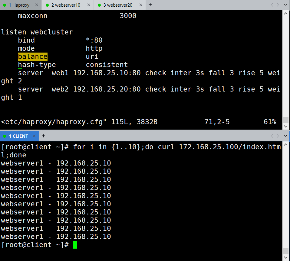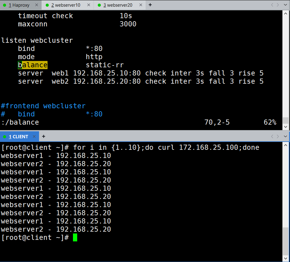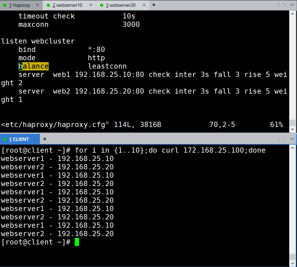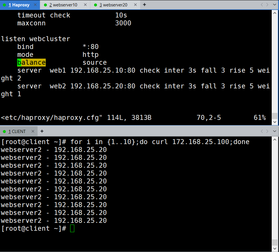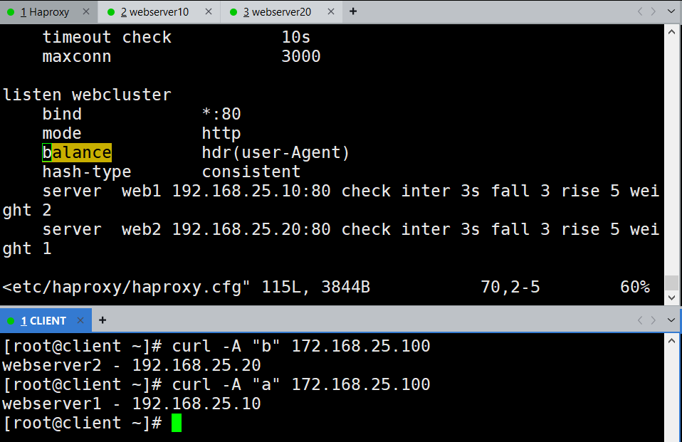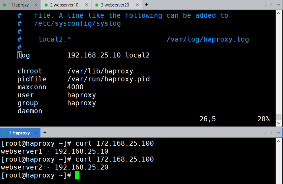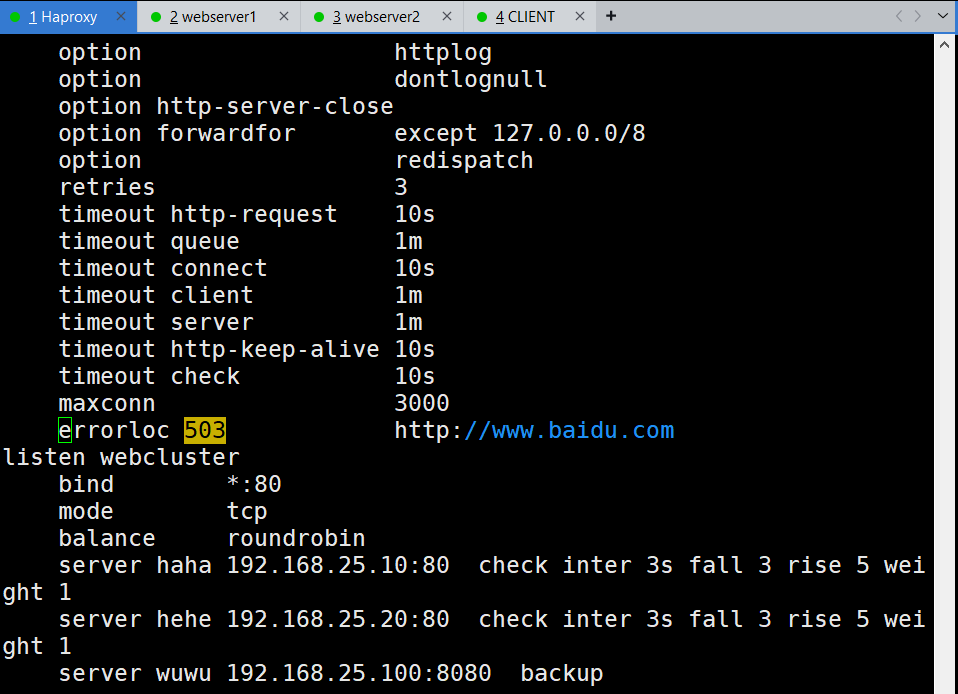 实验环境不多做概述,主要通过配置文件熟悉Haproxy的实际应用。