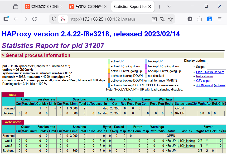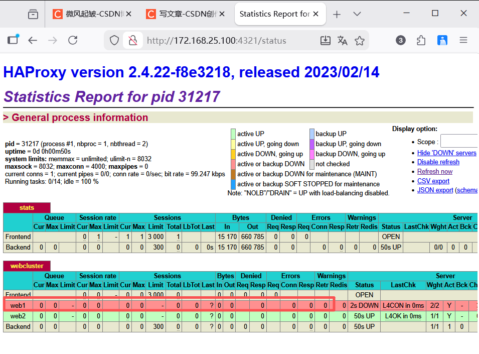 通过web界面,可视化显示当前HAProxy的运行状态