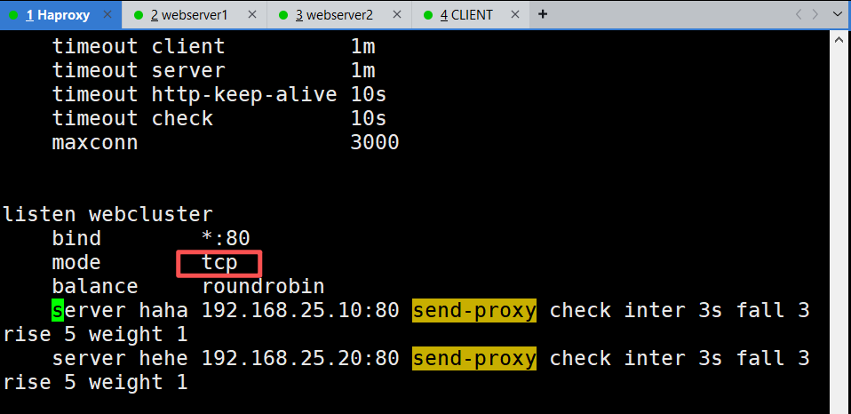 haproxy设置模式为四层访问控制