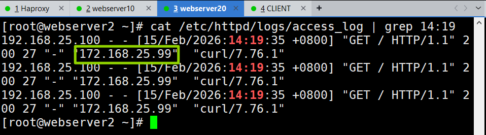 在客户端访问后查看任何一个服务器访问日志
