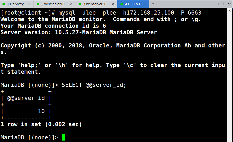 1、分别在两台服务器上安装mariadb数据库。并设置id。