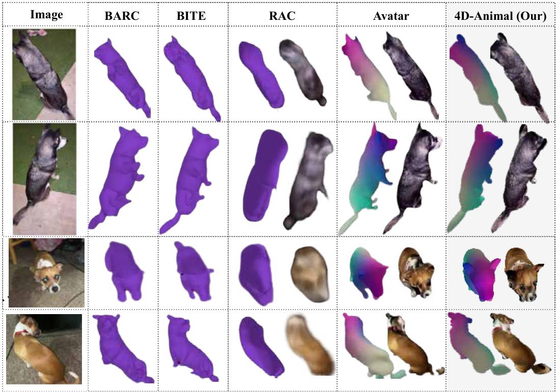 论文 Table 2 报告:相对 Avatars,4D-Animal 的
