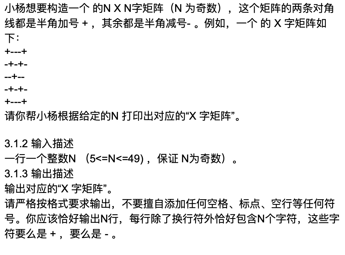 图形的输出难点是找每一行输出的某些符号的数量与行号的关系,有时候这种关系不能找到一个统一的公式,需要将图形拆分成几部分分别找规律再输出。