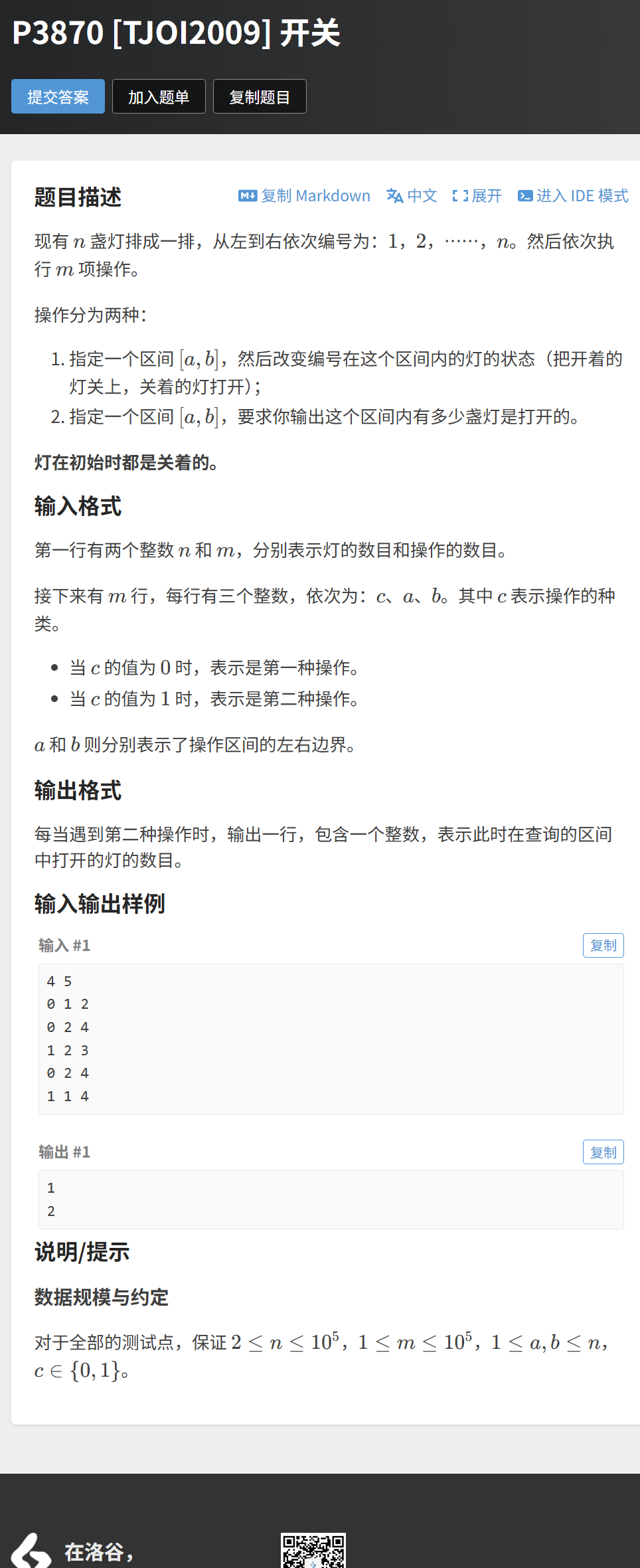 3.1 例题 1:开关(洛谷 P3870 [TJOI2009])