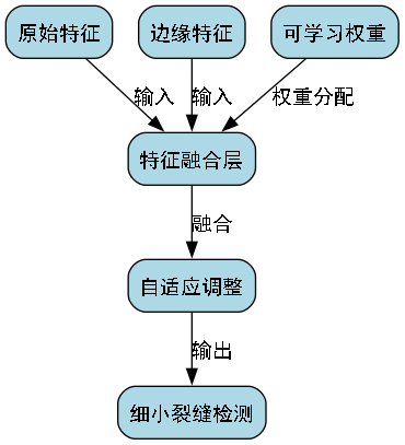 为了增强模型对裂缝边缘的感知能力,我们引入了全局边缘信息传递机制。该机制通过以下公式计算边缘增强特征: