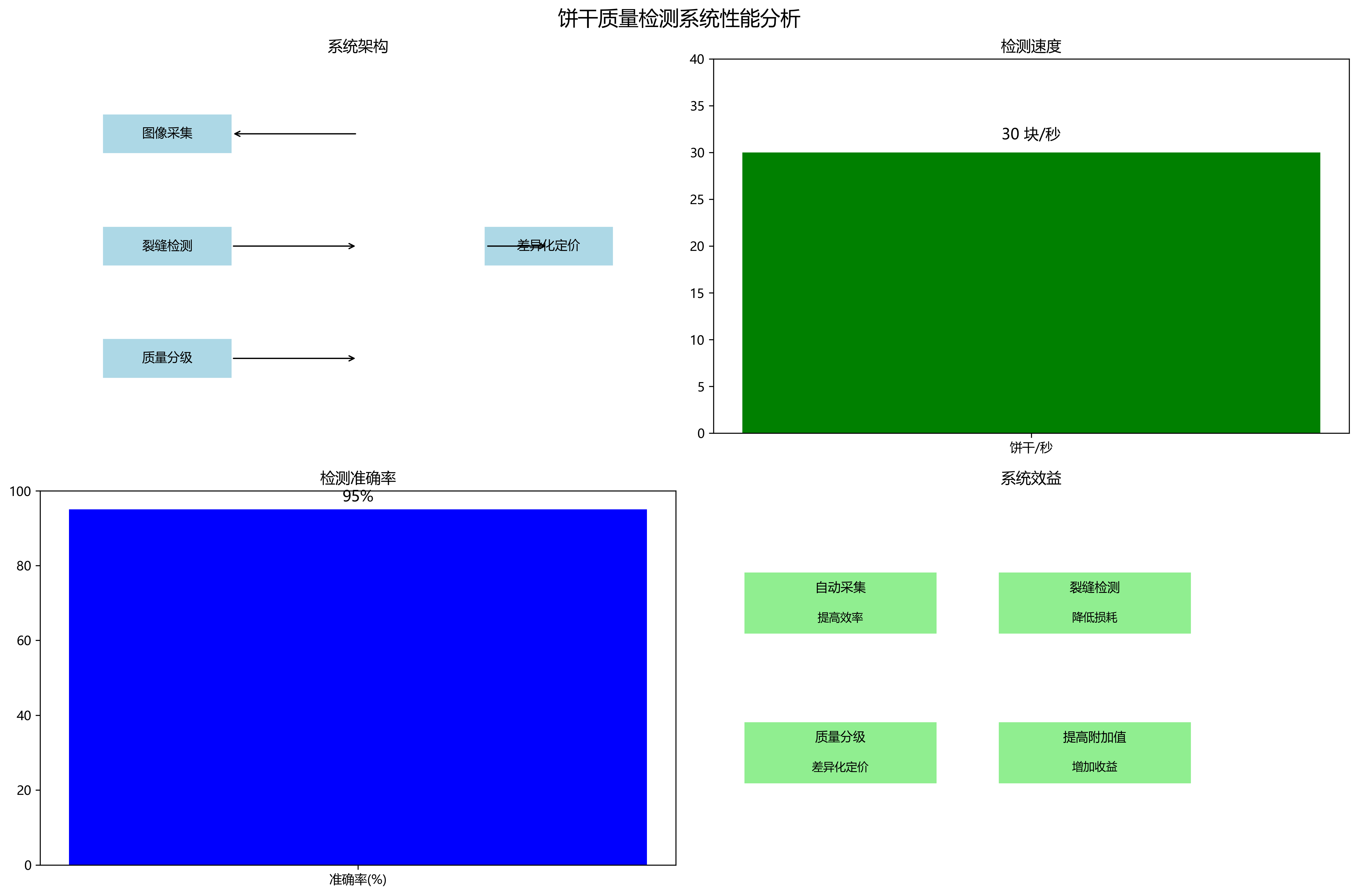 我们将系统部署在生产线上,实现了饼干图像的自动采集、裂缝检测和质量分级。系统运行稳定,检测速度达到每秒30块饼干,准确率达到95%以上。通过系统自动分级,企业能够根据饼干质量进行差异化定价,提高了产品附加值。