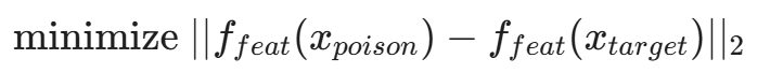2018 年,Shafahi 等人提出了基于特征碰撞的攻击方法。其核心思想是:让有毒样本在像素空间 看起来像"鱼",但在模型的特征空间里看起来像"狗"。