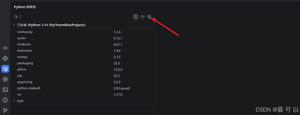 在 Pycharm 界面的左下角找到 Python 软件包 图标