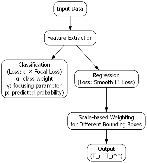 - 回归损失:采用Smooth L1 Loss,对小目标赋予更高权重