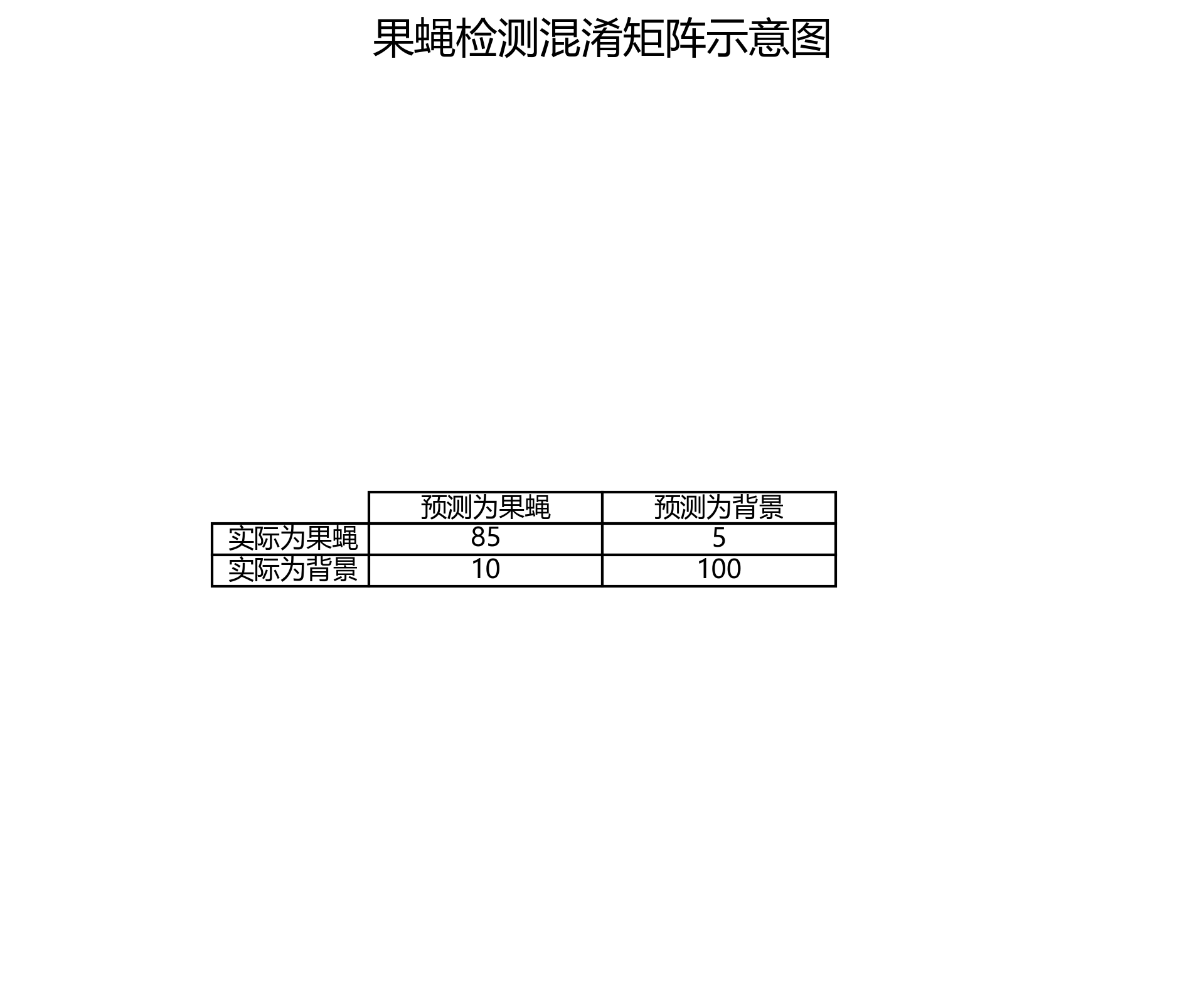 召回率(Recall)表示被模型正确检测为果蝇的样本占所有实际果蝇样本的比例,计算公式为: