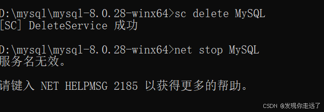 如果执行 net stop MySQL 提示服务名无效,这是因为服务已经删除,不属于异常: