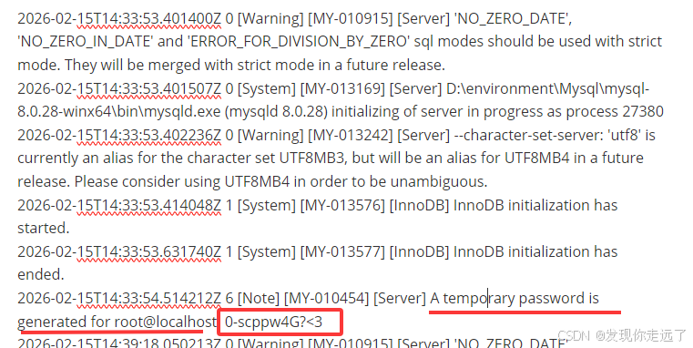初始化会生成 MySQL 系统表、数据目录以及 root 的初始临时密码。