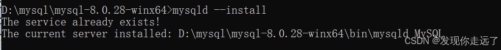 The current server installed: D:\mysql\mysql-8.0.28-winx64\bin\mysqld MySQL