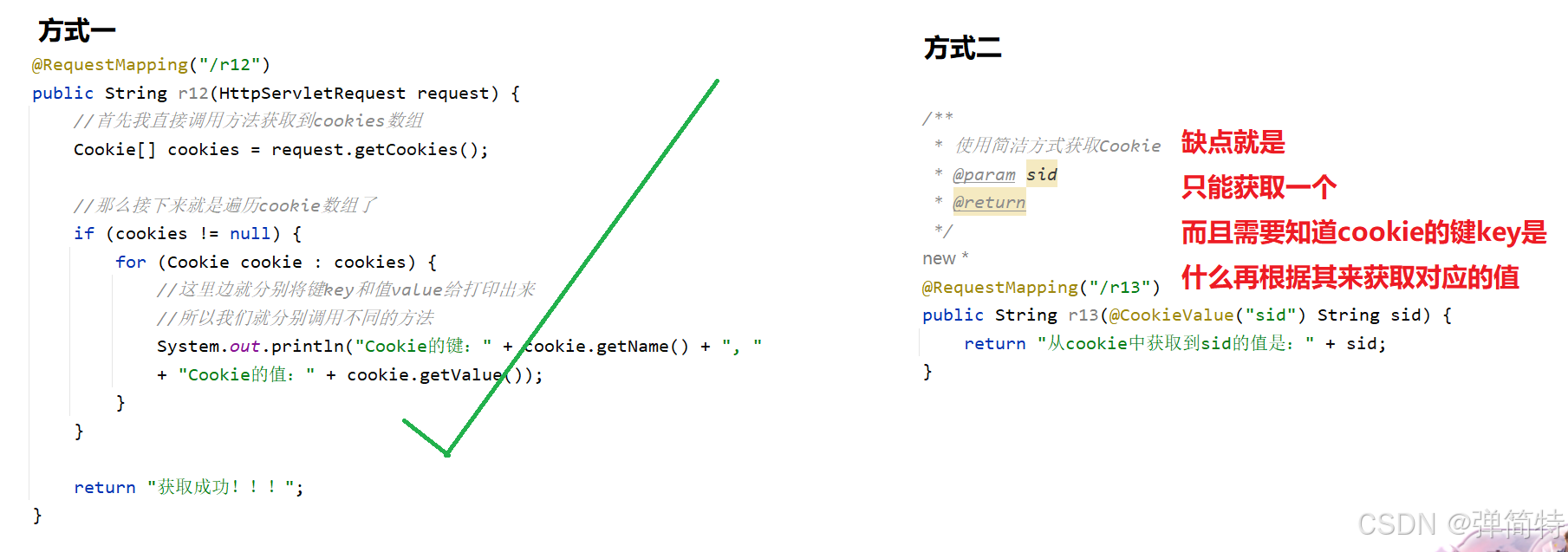 - 传统方式:通过HttpServletRequest的getHeader()方法获取。