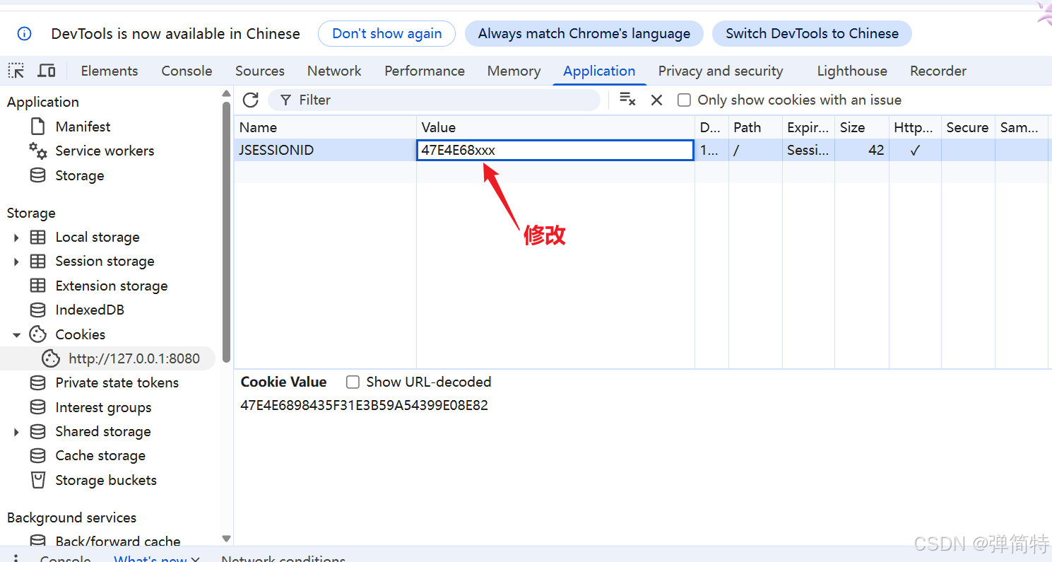 8)那么上述如果我们修改一下cookie中的sessionID的值