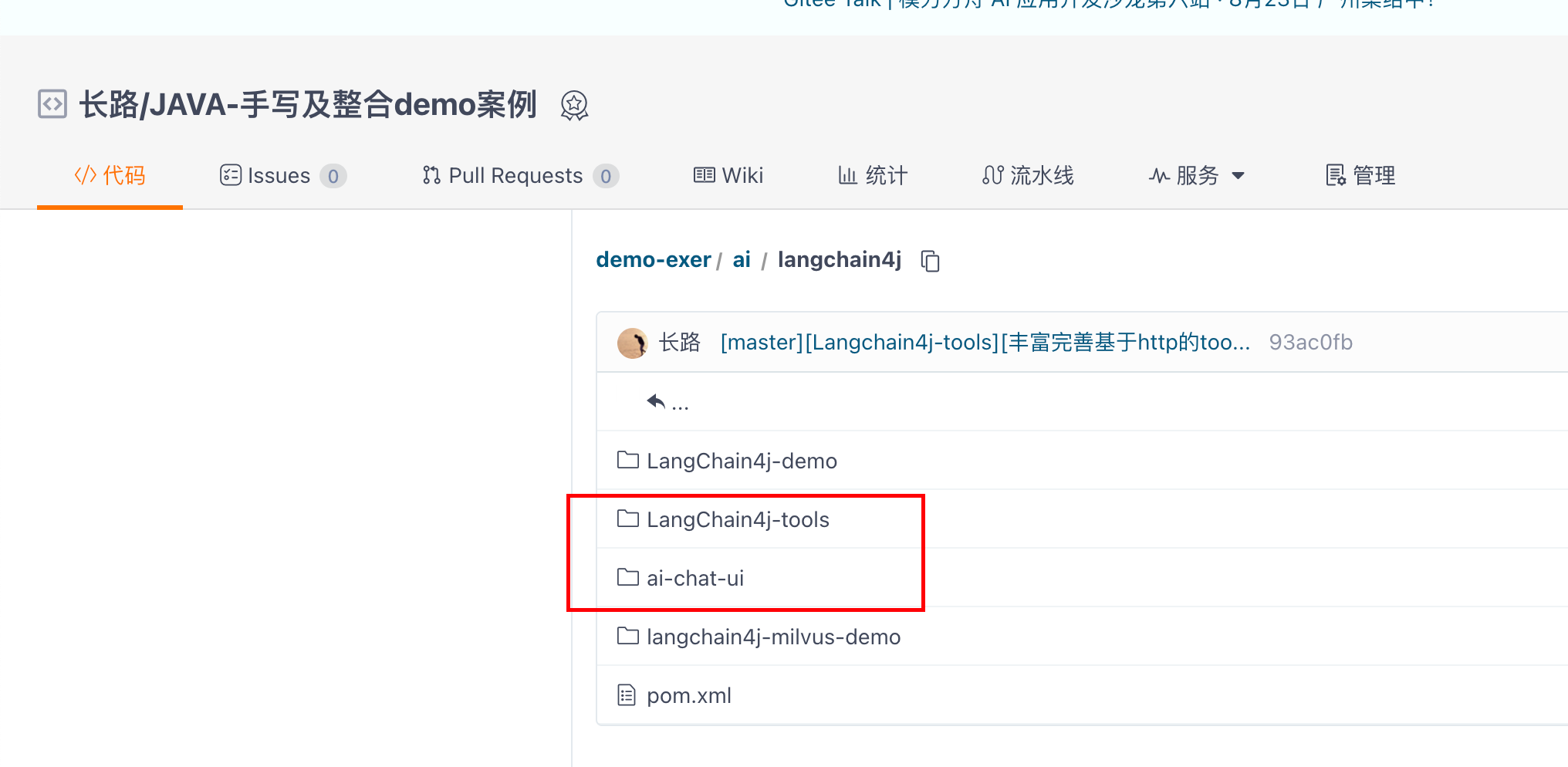 https://gitee.com/changluJava/demo-exer/tree/master/ai/langchain4j