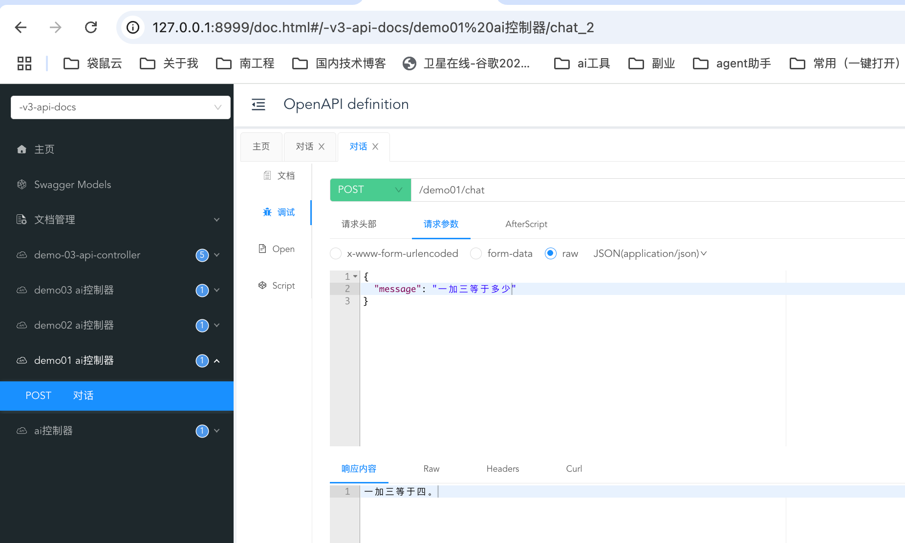 在当前的demo中我们导入了相应的langchain4j starter以及对接了阿里百炼与基于Xorbits Inference部署的大模型,补充了前后端接口文档工具包: