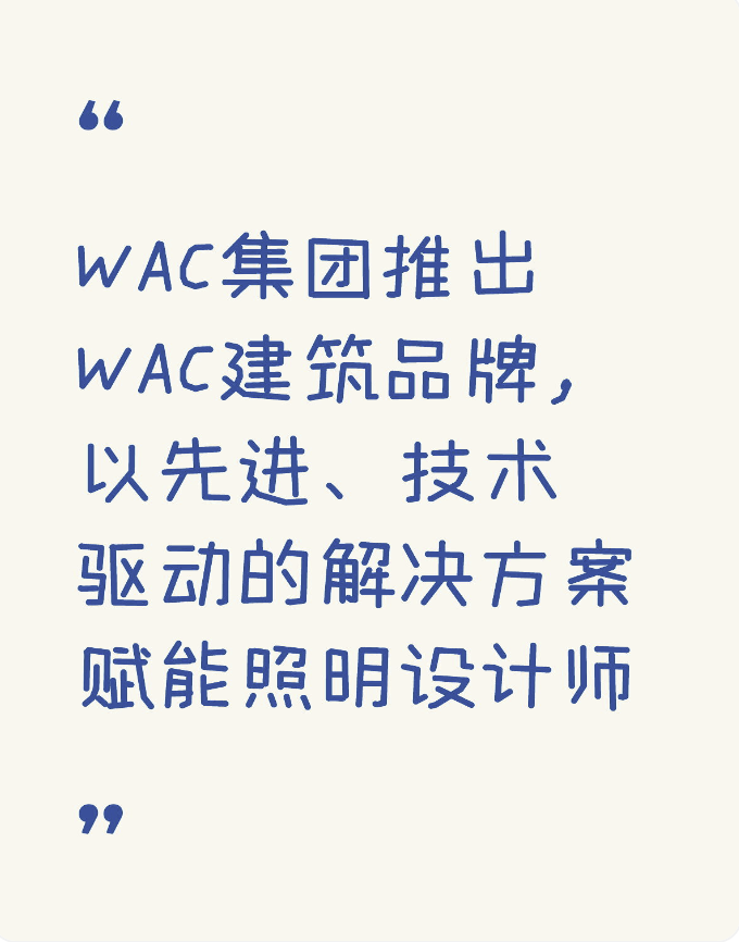 WAC集团业务发展副总裁基思·伊格尔表示:"依托WAC集团深厚的历史传承,我们倍感荣幸能够在2026年慕尼黑国际建筑博览会(Light + Building 2026)上盛大推出全新的商用规格品牌------WAC Architectural。此次展会为我们搭建了一个全球性的交流平台,让我们得以与客户、合作伙伴以及行业领袖建立紧密联系,并展示WAC集团专为项目驱动型应用精心打造的精密灯具产品组合。"
